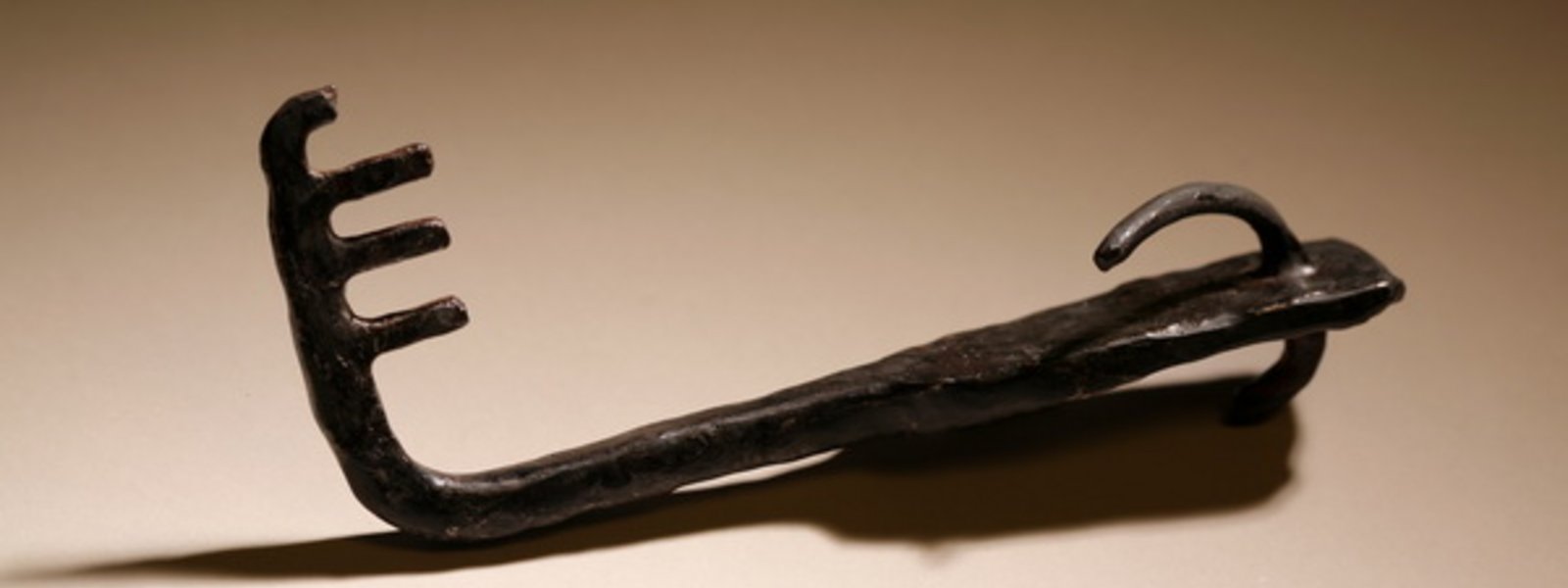 Cette clé retrouvée à Roissy date de la fin de l’époque gallo-romaine et servait probablement à l’ouverture ou la fermeture d’une porte. Vous pouvez la retrouver en photographie devant l’entrée du musée. Cette photographie est l’œuvre de l’artiste français Jean-Luc Moulène. Il a choisi cette clé comme symbole depuis le parvis du musée afin d’inciter les passants à y entrer.
